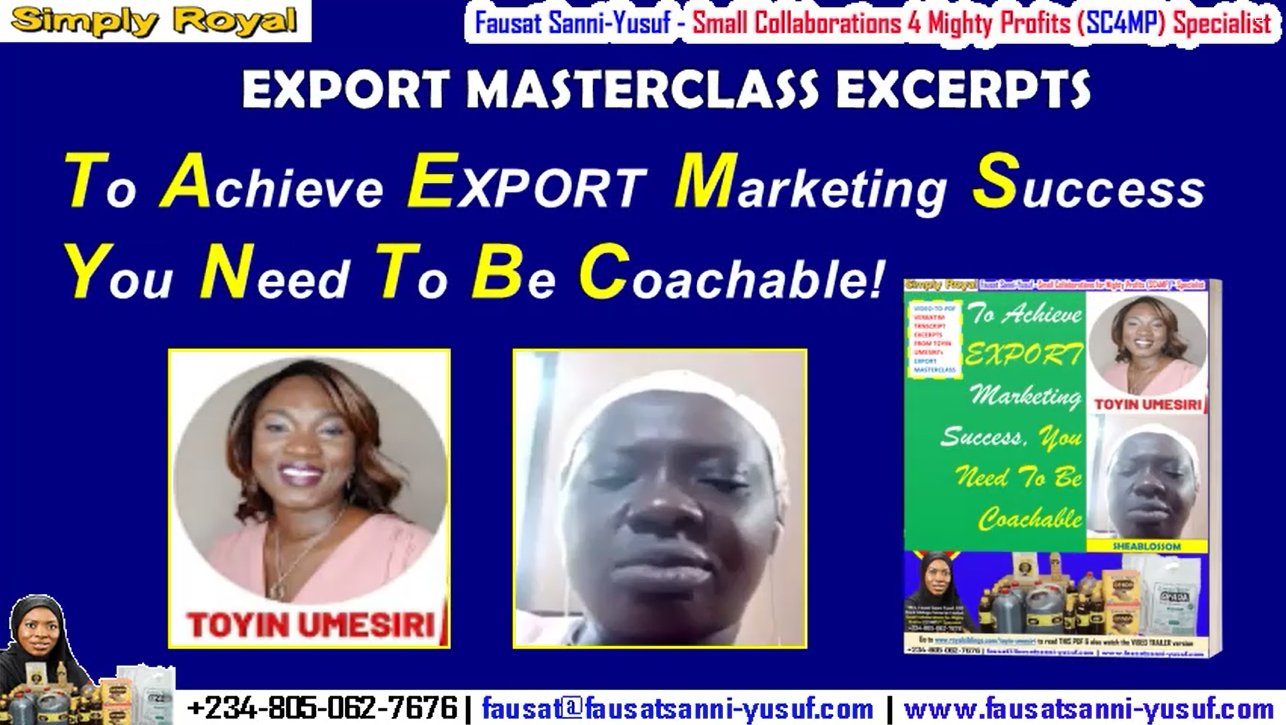 To Achieve EXPORT Marketing Success, You Need To Be Coachable [Excerpt From Toyin Umesiri’s Masterclass VIDEO]